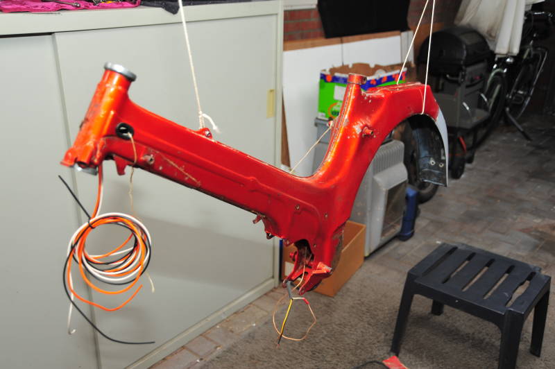 Een revisie kun je het niet helemaal noemen. groten deels uit elkaar gehaald onderdelen en frame schoongemaakt en waar nodig nieuwe onderdelen geplaatst. Oude banden vervangen. verlichting gerepareerd. nieuw zadel geplaatst. wat onderdelen vervangen die ik zelf kon maken. tekeningen zijn hier ook te vinden.
